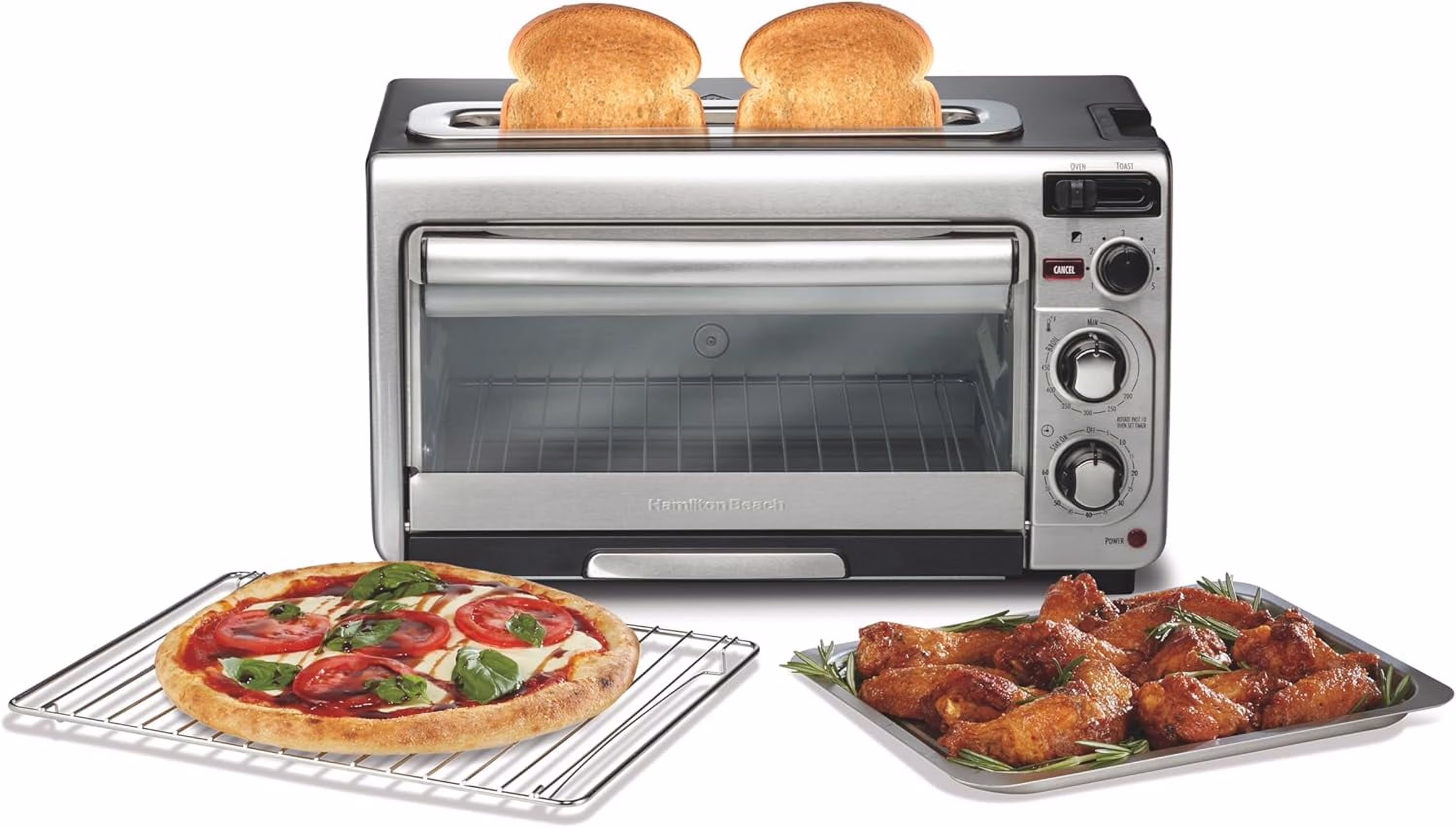 2-in-1 Countertop Toaster Oven and Long Slot 2 Slice Toaster, 60 Minute Timer and Automatic Shut Off, Shade Selector, Stainless Steel (31156)